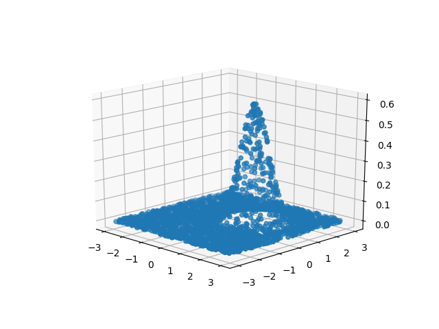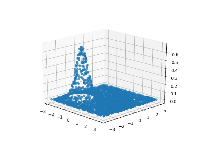 Sure enough, if you take a look at the data, you’ll see that the yellow skittle data is grouped around the point [-1,-1] and that the purple skittle data points are all clustered around [1,1]. Now take a look at the models we’ve made. You’ll see that the center of the peak for the purple skittle model is somewhere near [-1,-1] and that the peak of the yellow skittle model is around [1,1].