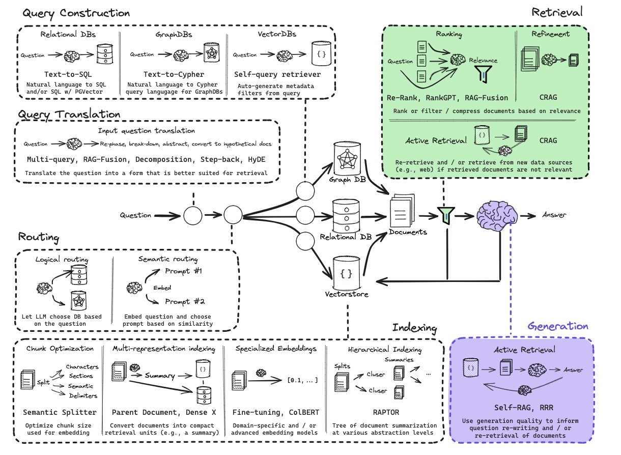 to tasks where agents perform decision making and long-term planning by consuming data streams including real-time multimodal percepts (audio, video, formatted data). Figure 1 provides a good overview (LangChain 2024) of the current state of affairs in the Retrieval Augmented Generation (RAG) built on tope of autoregressive Large Language Models (LLMs). Some of the components shown are mostly in use and others are under active R&D.